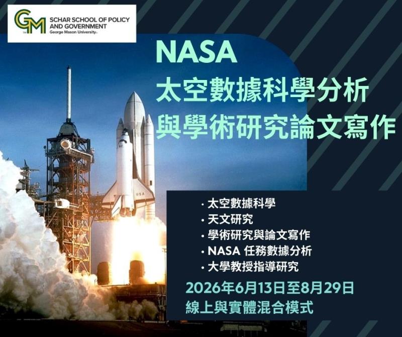 NASA 太空數據科學分析與學術研究論文寫作 2026 暑期青少年學者計畫
